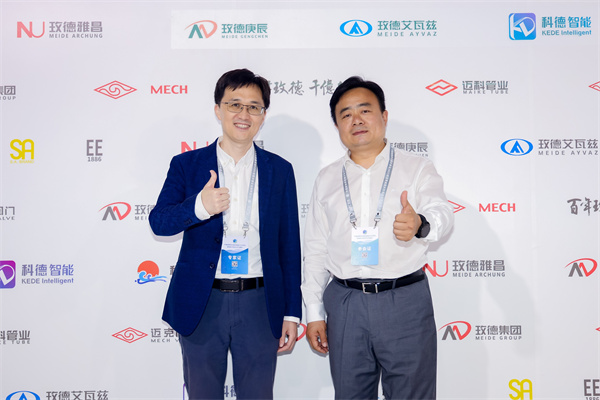 玫德集團(tuán)黨委書(shū)記、董事局副主席郭雷與清華大學(xué)給水排水教研所副研究員、博士生導(dǎo)師陳超現(xiàn)場(chǎng)交流