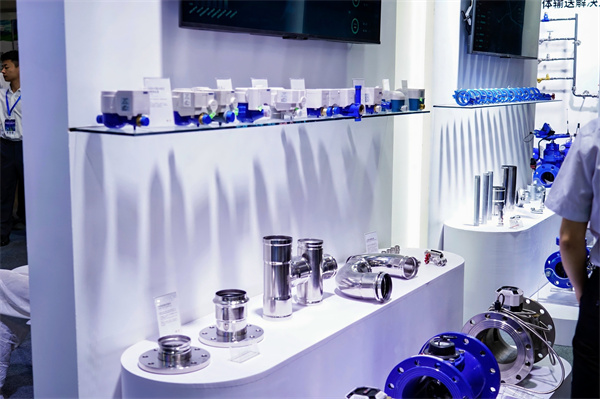 玫德集團展示了涵蓋智慧供水、高效排水、管網監測等環節的全場景解決方案,帶來大口徑鋼管柔性連接技術、水廠一站式解決方案、城市管網一站式解決方案,以及各類水表、不銹鋼管材管件、直縫鋼管、閥門、瑪鋼管件、溝槽管件等,吸引了眾多與會嘉賓駐足交流。