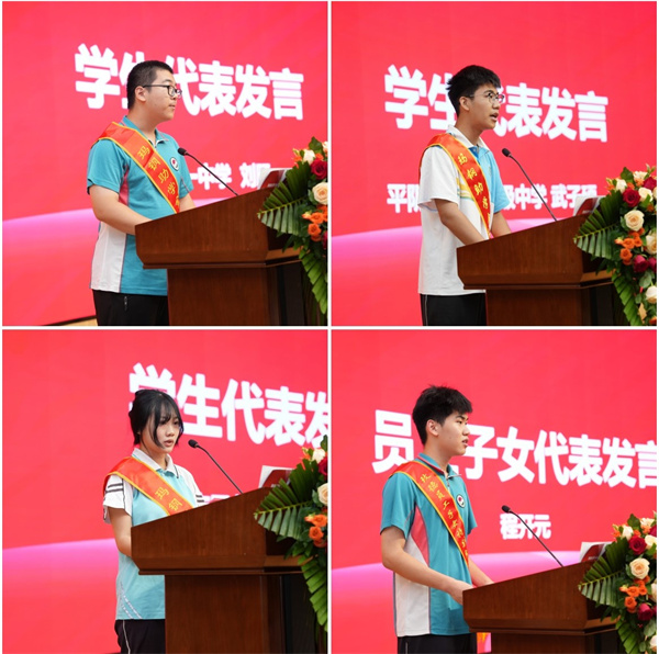 平陰一中劉旸、平陰實(shí)驗(yàn)高中武子碩、平陰工業(yè)學(xué)校王國(guó)慶和玫德集團(tuán)員工子女程開(kāi)元作為學(xué)生代表分別發(fā)言,誠(chéng)摯感謝玫德集團(tuán)的鼎力支持,感恩瑪鋼助學(xué)基金二十年如一日的守護(hù)。他們表示,無(wú)論身在何方,都會(huì)做家鄉(xiāng)的宣傳者,做玫德精神的傳承者!